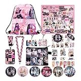 12pcs Bolígrafo borrable pink Set de artículos de merchandising, artículos para fans, regalo Kpop pink con Llavero(Negro)