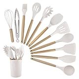 Strehknewen Juego de 12 Utensilios de cocina de silicona, resistentes al calor, antiadherentes, aptos para lavavajillas, ergonómicos, aptos para alimentos, Con cubo de almacenamiento, juego completo