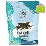 - Alga Kombu 100% orgánica de CiboCrudo cosechada en el mar según métodos tradicionales ancestrales; el secado natural al sol garantiza el mantenimiento de sus propiedades beneficiosas naturales