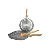- Material de alta calidad: fabricado en aluminio con revestimiento antiadherente efecto piedra, resistente a los arañazos, lo que garantiza una cocción uniforme y fácil de limpiar.