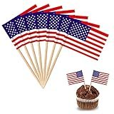 YXHZVON América Bandera Palillos de Dientes, 100 Piezas de cóctel Palo Banderas Mini Bandera Cupcake Toppers Palo para Comida de Fiesta Pastel Platos de Fruta Fiesta Pub Decoración