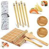 - Kit de 8 piezas para enrollar sushi, el kit incluye 2 x esterillas de Bambú (24 x 23cm / 9.5 x 9 pulgadas), 1 x paleta de arroz (20 x 6cm / 8 x 2.5 pulgadas), 1 x esparcidor de arroz (19 x 3cm / 7.5...