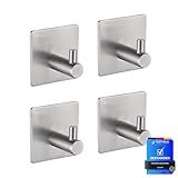 Ibergrif MK34251A, Ganchos Acero, Soporte de Pared para Toallas de Baño, Colgador Cocina, Adhesivo 3M, 4 Piezas, Acero Inoxidable, Plata