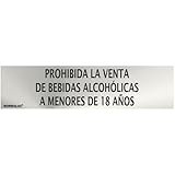 Normaluz RD707056 - Señal Adhesiva Rectangular Prohibida La Venta De Bebidas Alcoholicas A Menores De 18 Años Acero inoxidable Adhesivo 0,8 mm 5x20 cm